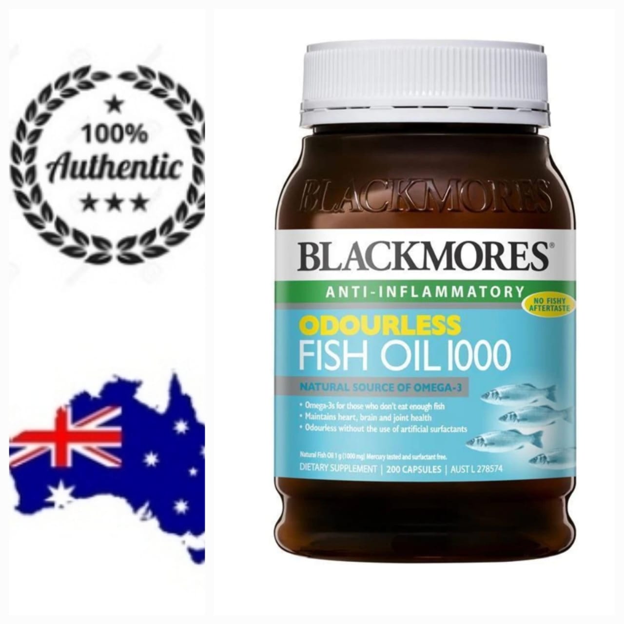 Fish Oil 1000 mg branded Australian 200 capsules quantity