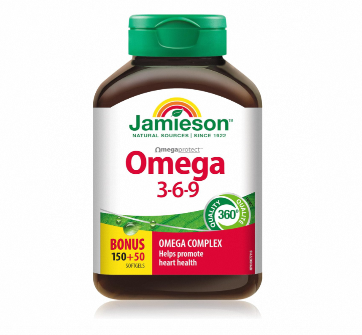 Jamieson Omega 3-6-9 is a complete source of omega-3, 6 and 9 essential fatty acids. Derived from fresh, pure cold-pressed oils of organic flax, borage and sustainably sourced fish, it helps to support heart health and maintain healthy cognitive function.