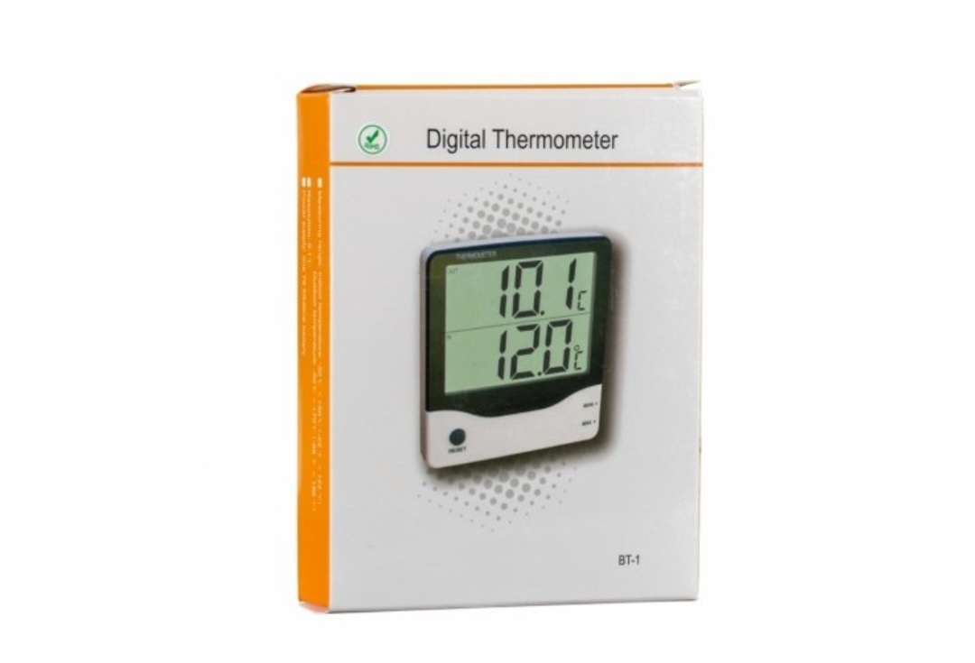 Elitech BT-1 Indoor/outdoor temperature, indoor display. ℃/°F temperature switch display, comfort display. Indoor and outdoor maximum and minimum temperature memory function. Memorized MAX/MIN indoor temperature and value automatically. With back stand and magnetic stick at back side, convenient to place.