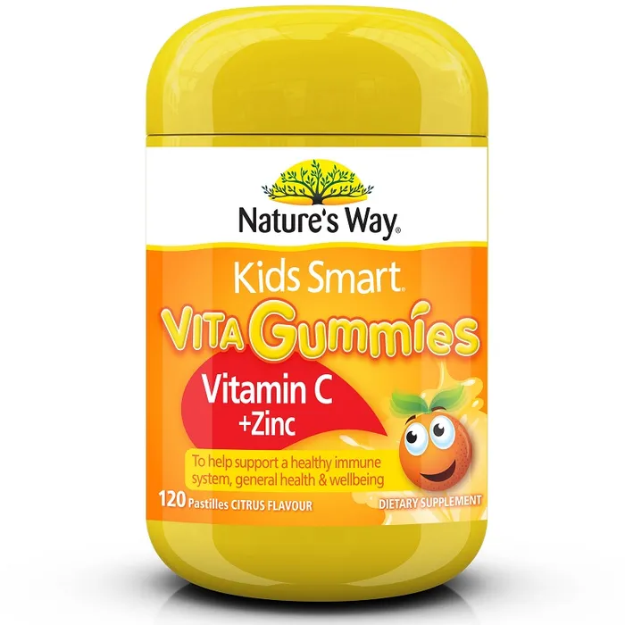 Nature’s Way Kids Smart Vita Gummies Vitamin C + Zinc is a delicious citrus-flavoured chewable pastille (gummie) and has the goodness of vitamin C + zinc to support immune system health and general health & wellbeing.