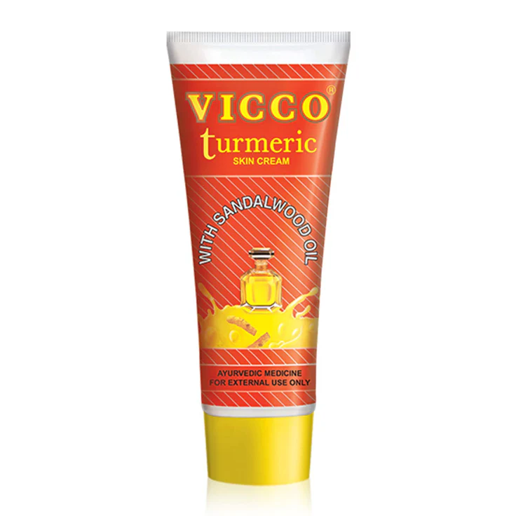 Vicco Turmeric skin cream vanishes into your skin & its active ingredients like turmeric and sandalwood oil restores the skin glow. The regular use of this cream results in soft, supple and spotless skin. 1. Protects skin from acne, pimples, blemishes & other skin problems. 2. Lightens, brightens uneven skin tone. 3. Antiseptic properties heal and cure minor burns, cuts and wounds. 4. Herbal skin cream made from pure sandalwood oil and turmeric. All Vicco products are Vegan and Halal certified. Being pure and natural, with all the wonderful attributes of turmeric and sandalwood oil, Vicco Turmeric Cream gives the skin a radiance that mere cosmetics can’t hold a light to. It also protects the skin from ultraviolet Rays of the sun and maintains the original color of pigments of your skin.