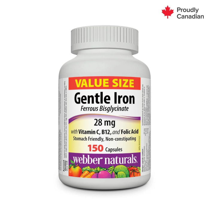 Gentle Iron also includes vitamin B12 and folic acid – two other essential nutrients for red blood cell production – and vitamin C, which helps boost iron absorption. Take one-per-day to help prevent iron-deficiency anemia.